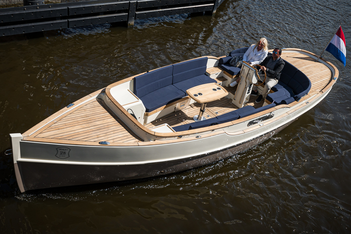 De Henley28 is speciaal ontworpen voor electrisch varen. Het ongekend efficiente onderwaterschip van de Henley28 zorgt ervoor dat zij bij 8 km/h slechts 1400 Watt verbruikt. En alles wat je niet verbruikt, hoef je ook niet aan accus mee te slepen en aan te schaffen.