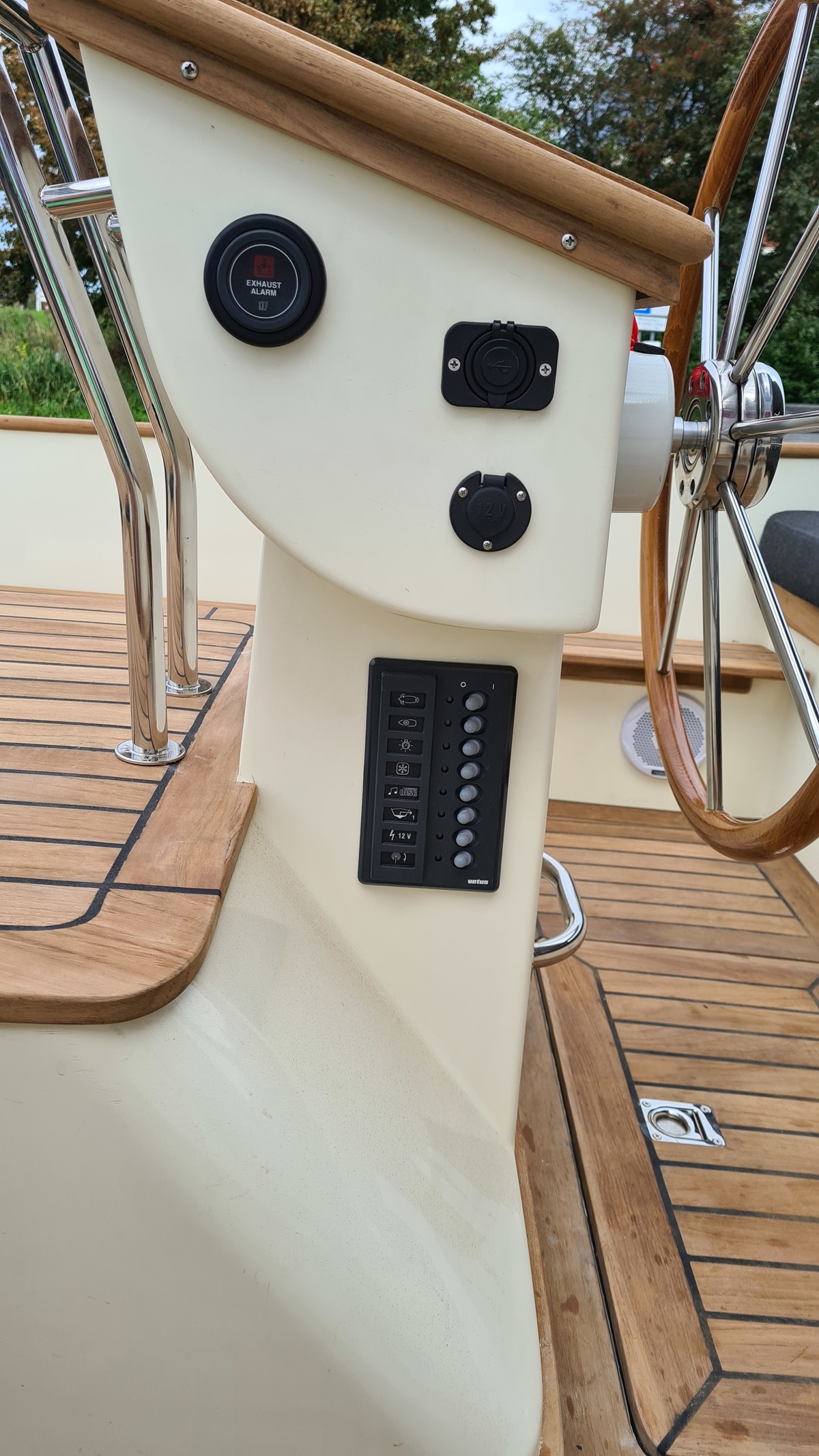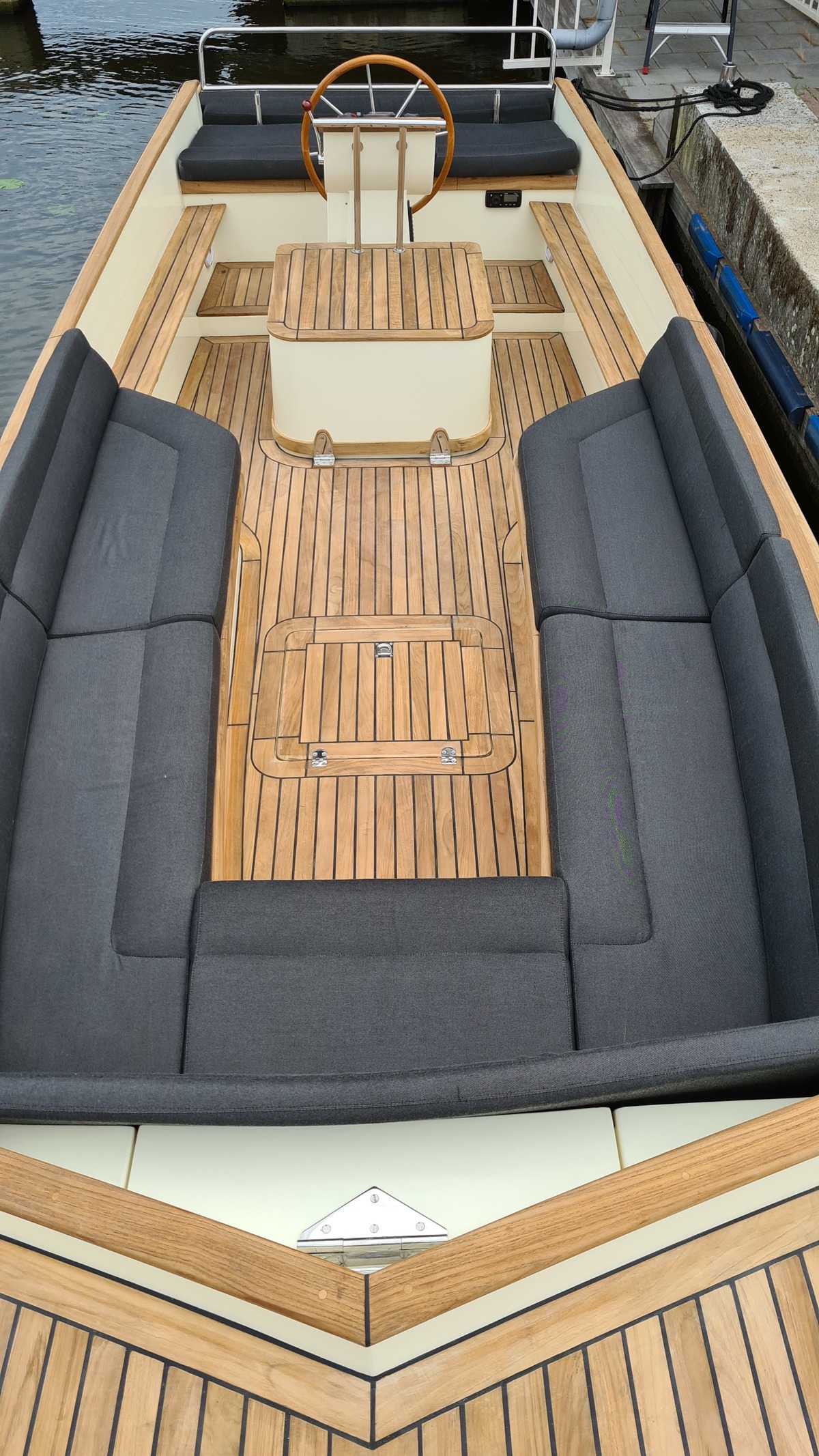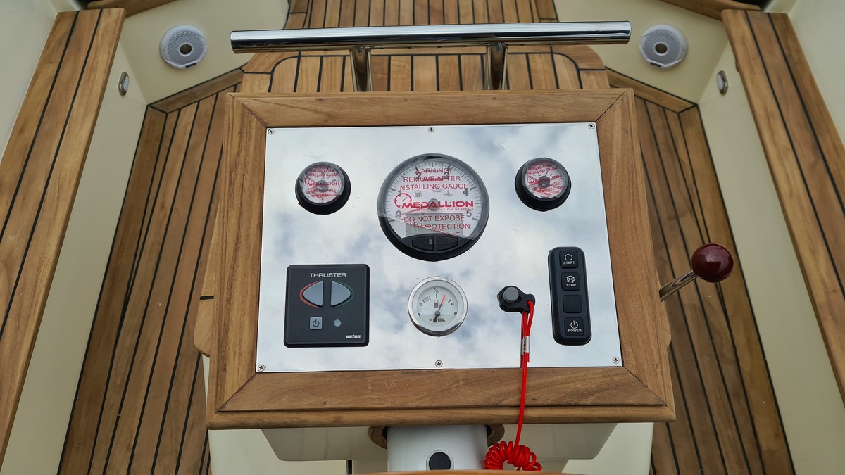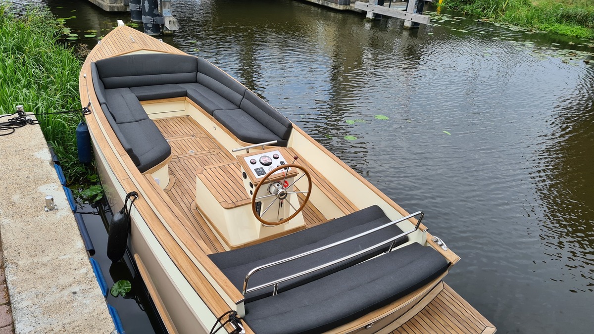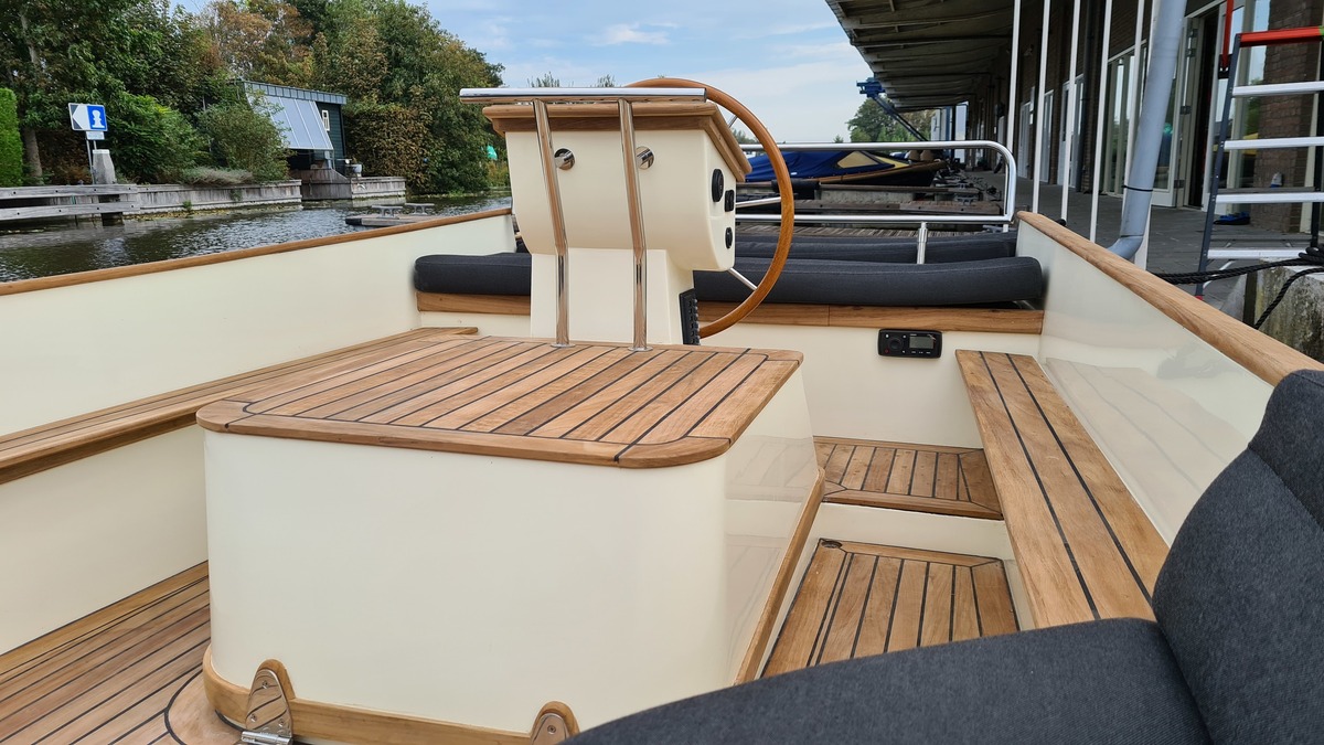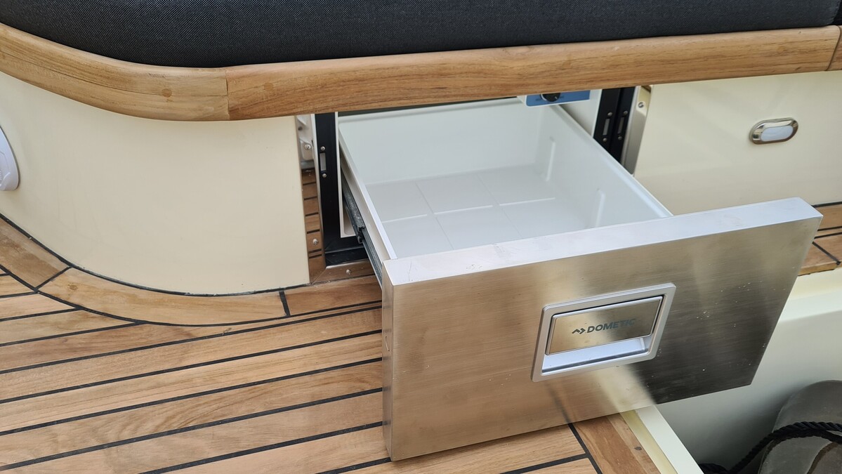 Voorzien van koellade, dubbele accu's, audio met BT streaming, een A7 kaartplotter en luxe kussens in Silverguard Grey.