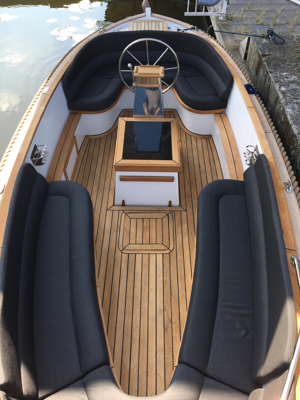 Massieve teakhouten kuipvloer (12mm!) met bergluiken, afwerking met lijfhout.
